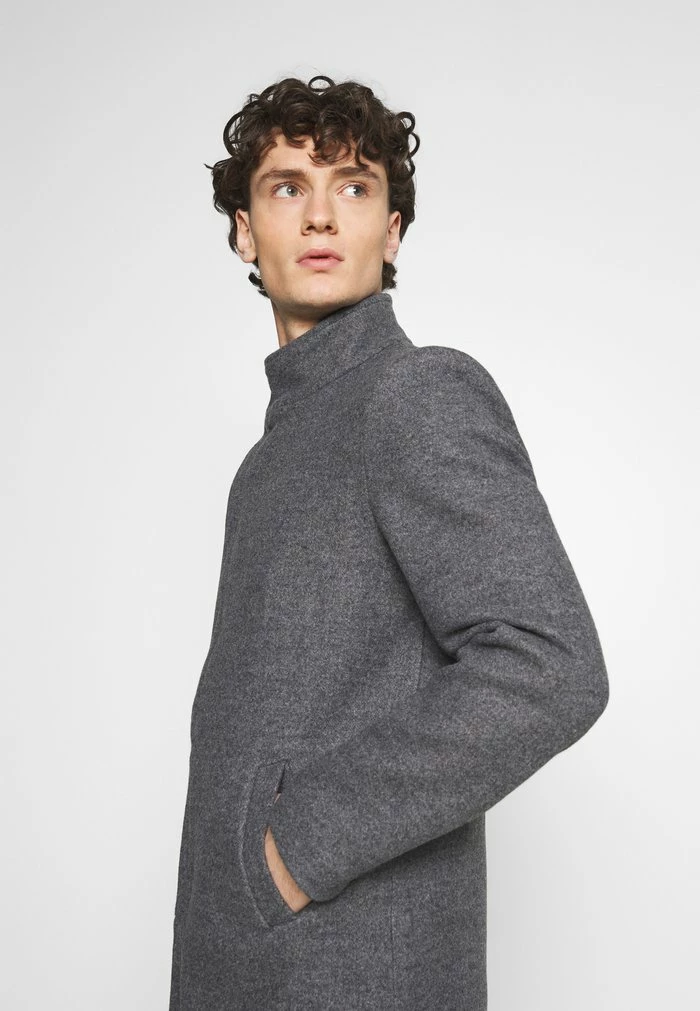 - Details: Inseam pockets, button row, shoulder pads, covered fastener, Two-way zipper
